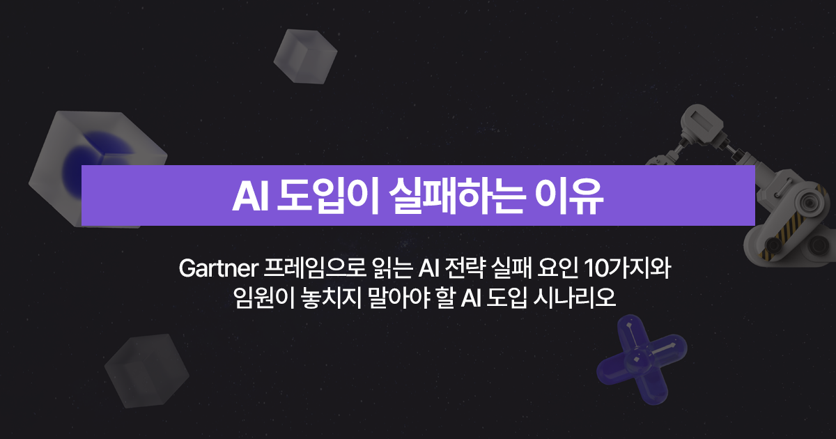 요즘 기업마다 '우리도 AI 써야지!'가 이미 번지고 있습니다. 하지만 결과는 놀랍게도, 10곳 중 8곳이 실패한다는 결과입니다. AI가 부족해서일까요? 문제를 잘못 정의했거나, 조직이 준비되지 않았기 때문이죠. IBM은 ‘혁신’을 외쳤지만 의료 현장에서 외면당했고, Air Canada는 챗봇 한 줄 답변 때문에 법정에 섰으며, 호주의 CBA는 “AI 자동화” 뒤 고객 불만 폭증으로 인력 복귀 명령을 내렸습니다. 공통점은 무엇일까요? 이번 콘텐츠에서는 Gartner의 AI Strategy in Context 프레임을 바탕으로 AI 도입의 성공과 실패를 가른 결정적 차이를 알려드립니다. 이와 관련된 아래 무료 세미나도 놓치지 마세요!